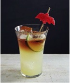 Fill a glass with ice and pour ½ cup of ginger beer and 2 teaspoons of fresh lime juice. Float 3 tablespoons of dark rum onto the ginger beer by slowly pouring the rum over a metal spoon turned upside down. Garnish with a lime wedge and enjoy the deep, intense flavors of this dark and spooky cocktail.